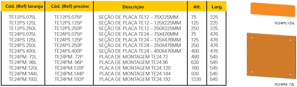 Placas de montagem e seções de placa para TE24