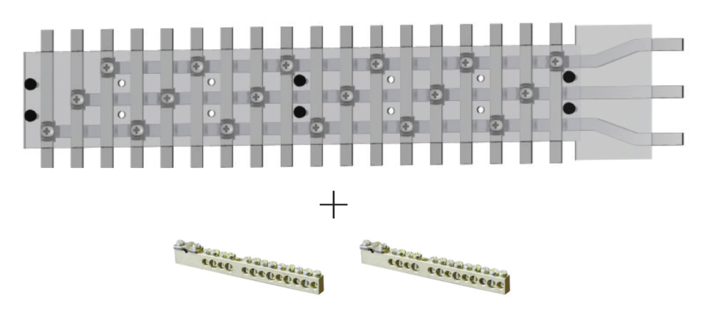 Formado por barramento vertical espinha de peixe e barras Neutro-Terra