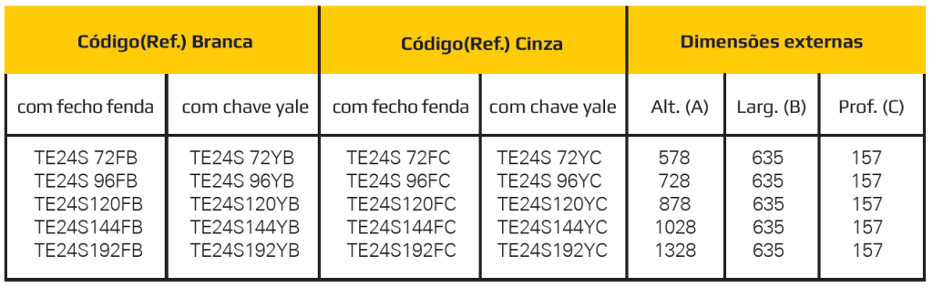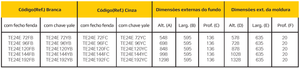 - Pintura cinza RAL 7035 ou branca RAL 9002.
